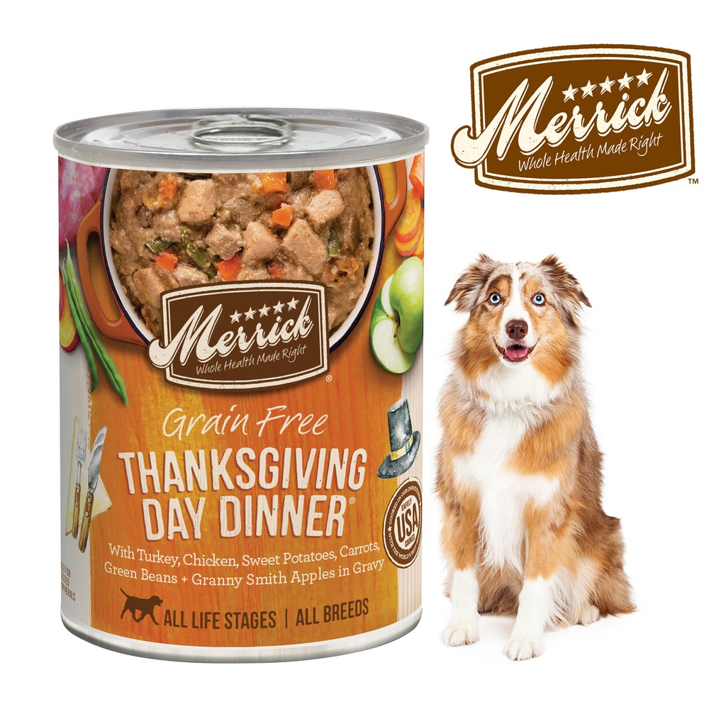 Merrick classic grain free canned dog food 132 oz 12 count thanksgiving day dinner 4699 392 1 pack in stock. Ships from and sold by east coast pet supply md. Other natural ingredients include sweet potatoes carrots green beans and granny smith apples.