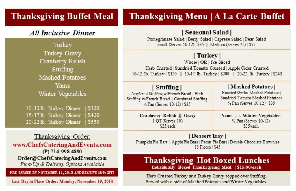 One quart of sweet potato casserole. 3 lb roasted amish chicken 24 hour marinated in peruvian spices roasted in house. Thanksgiving catering form please take a minute and fill out the thanskgiving catering form.