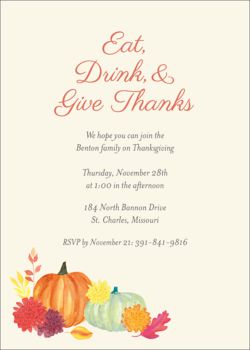 Skip to end of carousel. Get thanksgiving invitations wording ideas ideas on thanksgiving invitations. We offer custom invitations and stationery from top designers fast service and a 100 satisfaction guarantee.