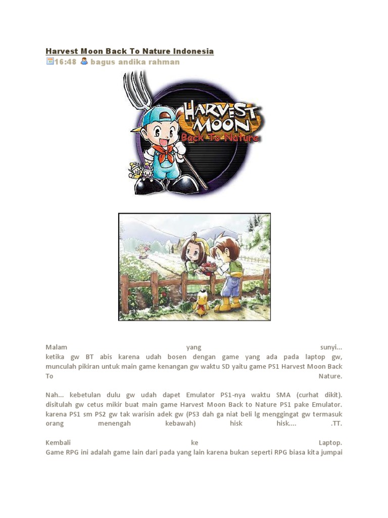Dari wikibuku bahasa indonesia sumber buku teks bebas. Han sya kan main harvest moon di hp tp pas tahun ke 4 kenapa gambar nya rusak ya. Event bersama penduduk di harvest moon back to nature.